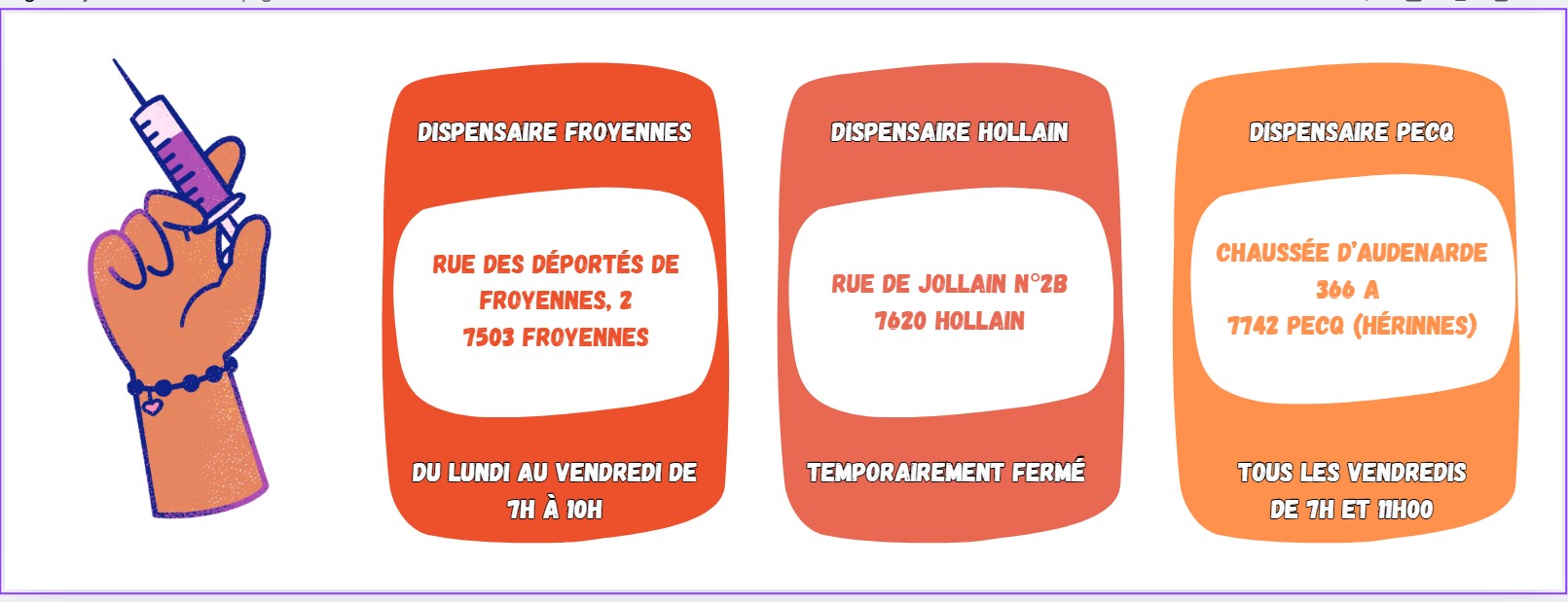 - du lundi au vendredi de 7h à 10h à 2 rue des Déportés de Froyennes à Froyennes